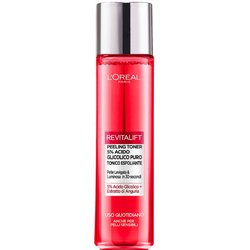 2 Agita il contenitore. Versa una piccola quantità di Revitalift Peeling Toner su un batuffolo di cotone;