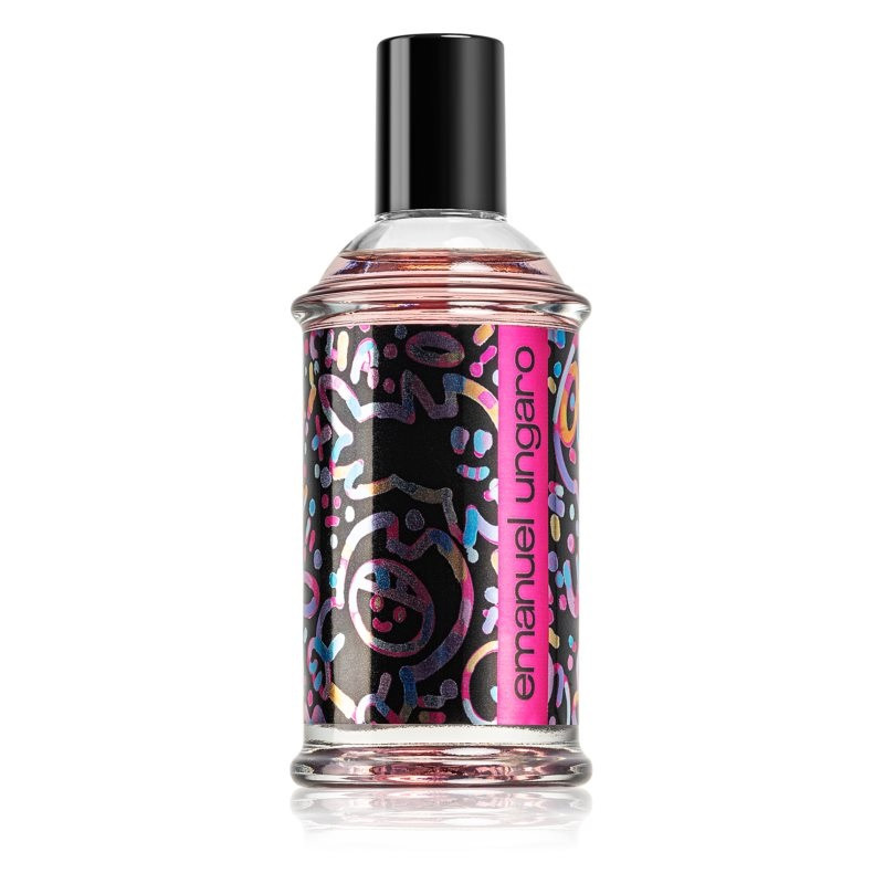 La box esterna, come il flacone, presenta una trama accattivante che ricorda la street art. Il colore rosa rimanda all`universo femminile. Il tocco neon celebra l`uso irriverente e innovativo del colore di Emanuel Ungaro.