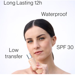 Resistente all’acqua, no transfer, SPF 30, long lasting 12h. Testato non comedogeno.