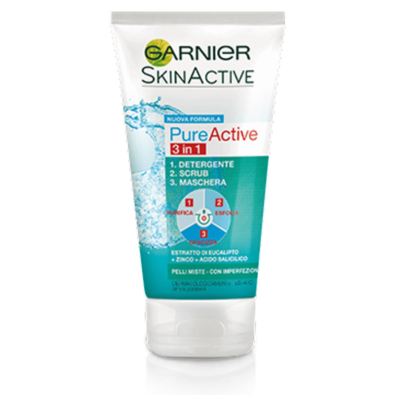 SkinActive Pure Active Gel 3in1 Detergente - Scrub - Maschera 150ml