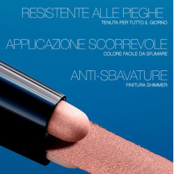- La texture cremosa e flessibile consente di sfumare, modulare e sovrapporre facilmente il colore con ombretti in crema o in polvere.